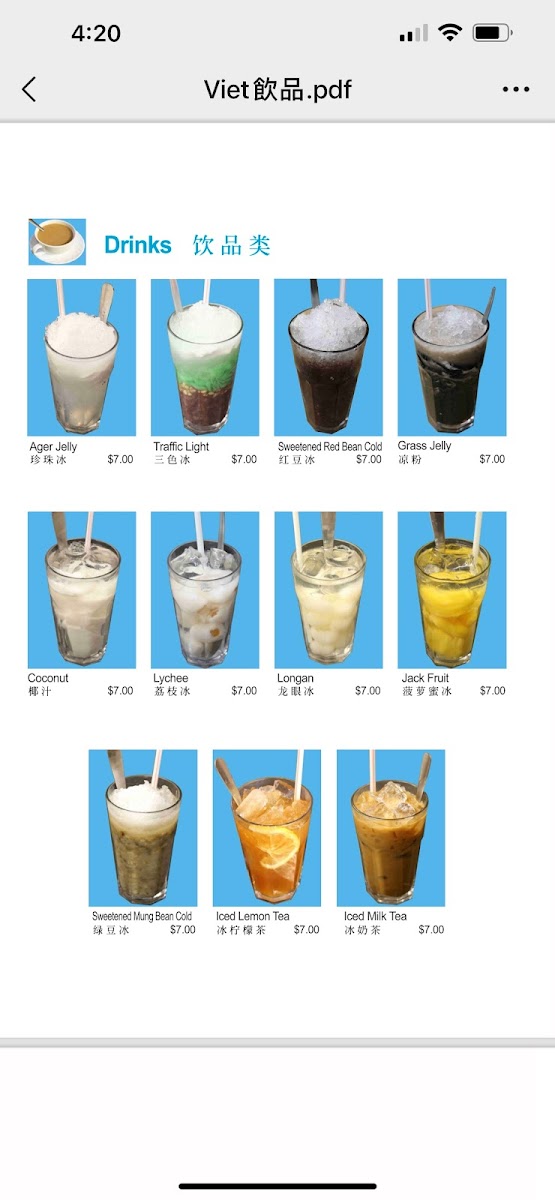 Vietnam Cafe Menu